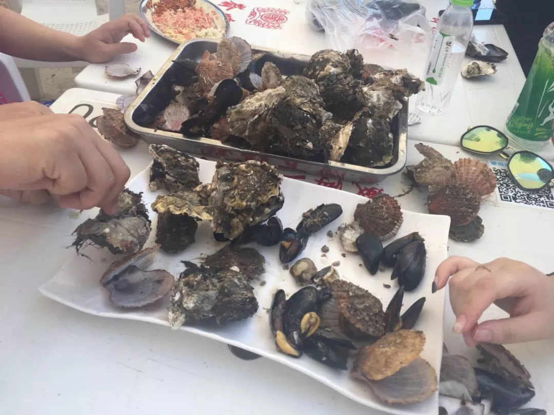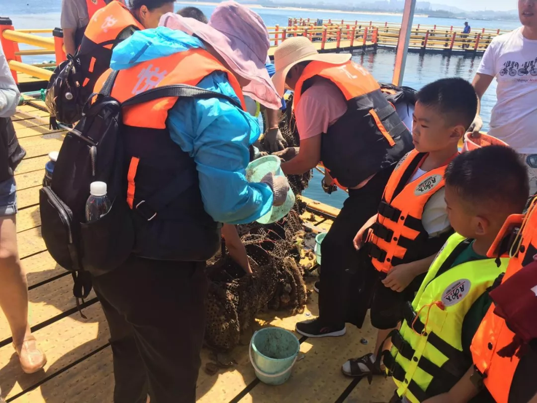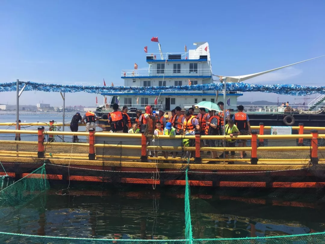 第一站海洋牧場(chǎng)采摘海鮮,抵達(dá)海上浮臺(tái),工作人員邊捕撈邊給大家做講解,捕撈的海鮮由工作人員加工后給我們品嘗。